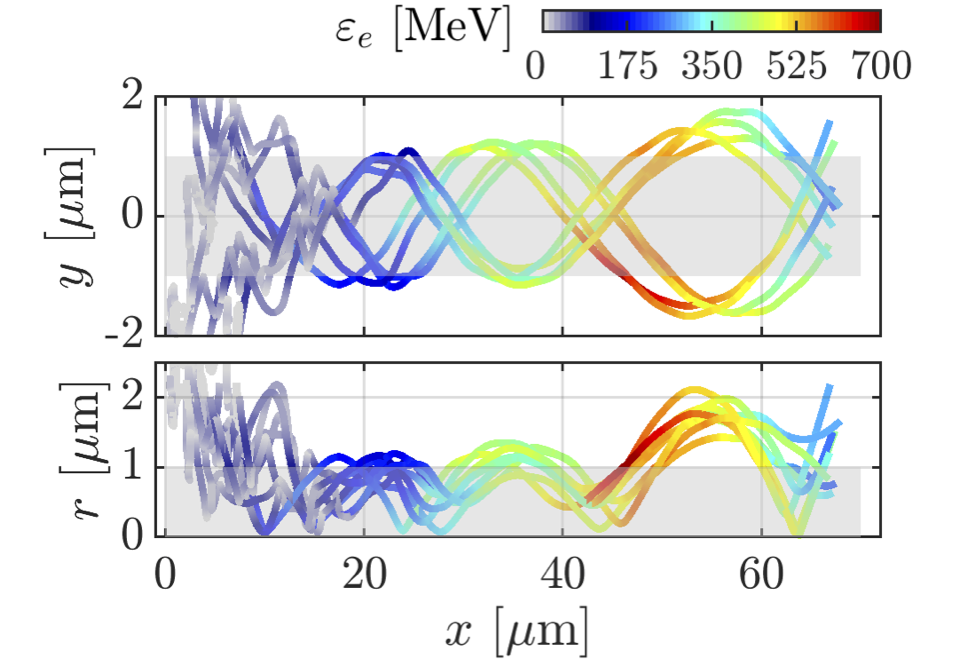 T. Wang, Z. Gong, and A. Arefiev, "Electron confinement by laser-driven azimuthal magnetic fields during direct laser acceleration", Phys. Plasmas 27, 053109 (2020).